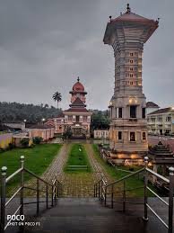 During the reign of Maratha ruler Chatrapati Shahu, the temple was reconstructed which was previously destroyed by Portuguese invasion. The temple complex is on the foothills of a mountain chain bordered by greenery in all sides. At the entrance of the temple of Shree Shantadurga Kunkalikarin, there is a massive doorway called Mahadwar. The temple has the big gold plated kalash that is built on the main dome with ornamented designs. In the garbhagraha, there are two statues of Shree Shantadurga. One is in a sitting position and the second idol of the Devi is in standing position. The same is the Darshanamurti because the devotees can take darshan of her daily. This statue is made up of the five metals. She is standing on a patt. She holds a trishul, sudarshan chakra and an arrow in her hand.